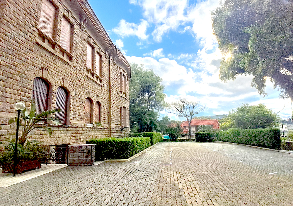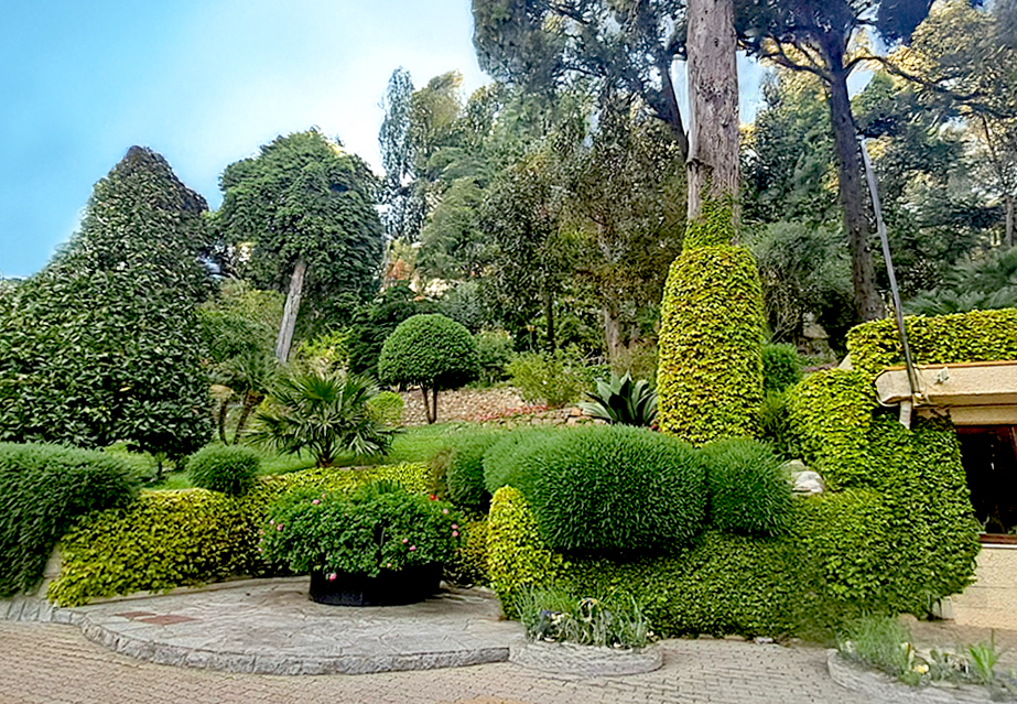 Il complesso residenziale offre numerosi servizi esclusivi: portineria, un grande parco mediterraneo con alberi secolari e piante aromatiche, piscina condominiale e parcheggio. L’ingresso principale, arricchito da un maestoso cancello in ferro battuto, sottolinea il prestigio della proprietà.