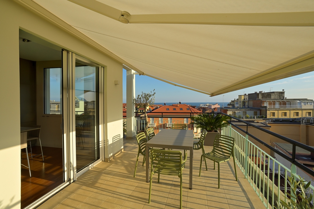 Un meraviglioso terrazzo di circa 50 mq offre una vista panoramica sul mare e sulla città.