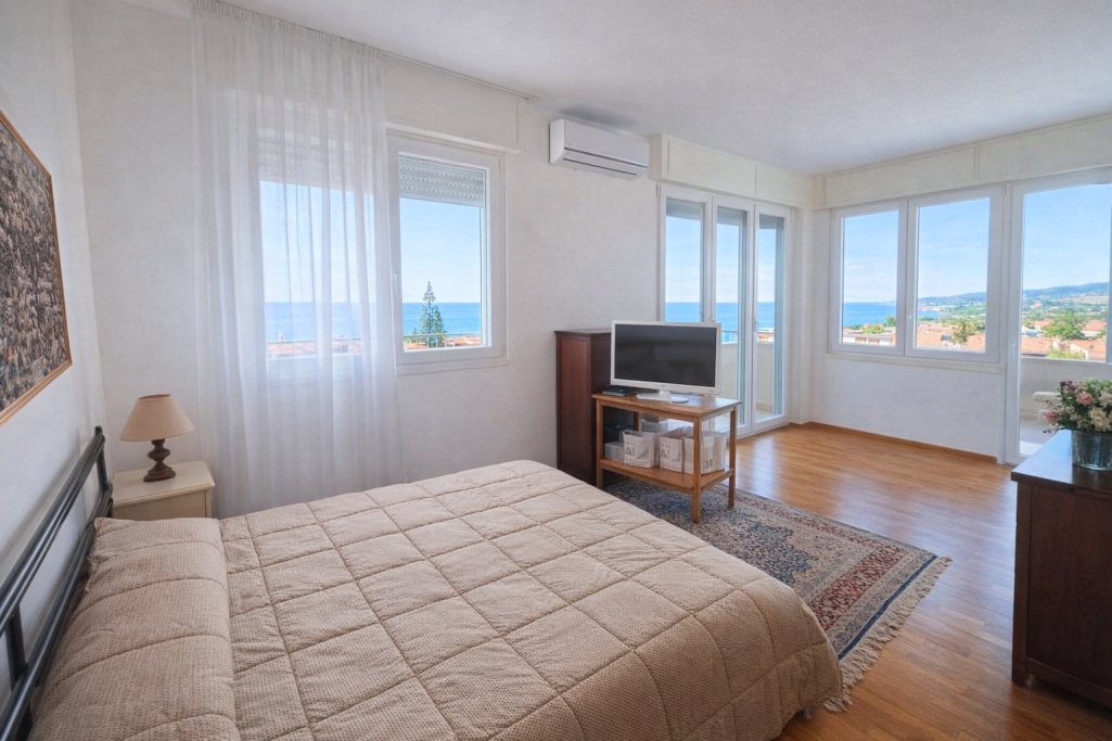 Situato al sesto e ultimo piano, servito da ascensore con accesso diretto all’interno dell’abitazione, l’immobile gode di una tripla esposizione che regala una vista panoramica da cartolina, aperta sul mare, colline e sulla città.