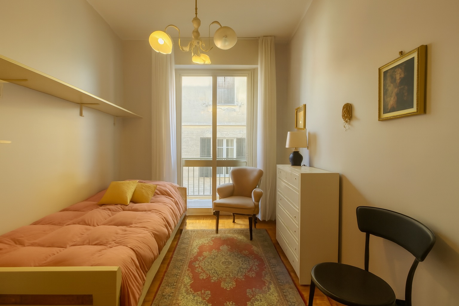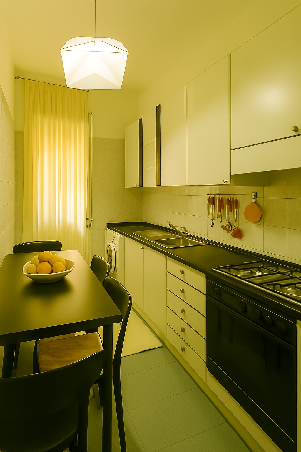 La proprietà gode di doppia esposizione e di una piacevole vista aperta, che dona luminosità e ariosità agli ambienti. Internamente si presenta con una distribuzione razionale: ingresso centrale, soggiorno, cucina abitabile, camera matrimoniale, cameretta, bagno finestrato e due balconi.