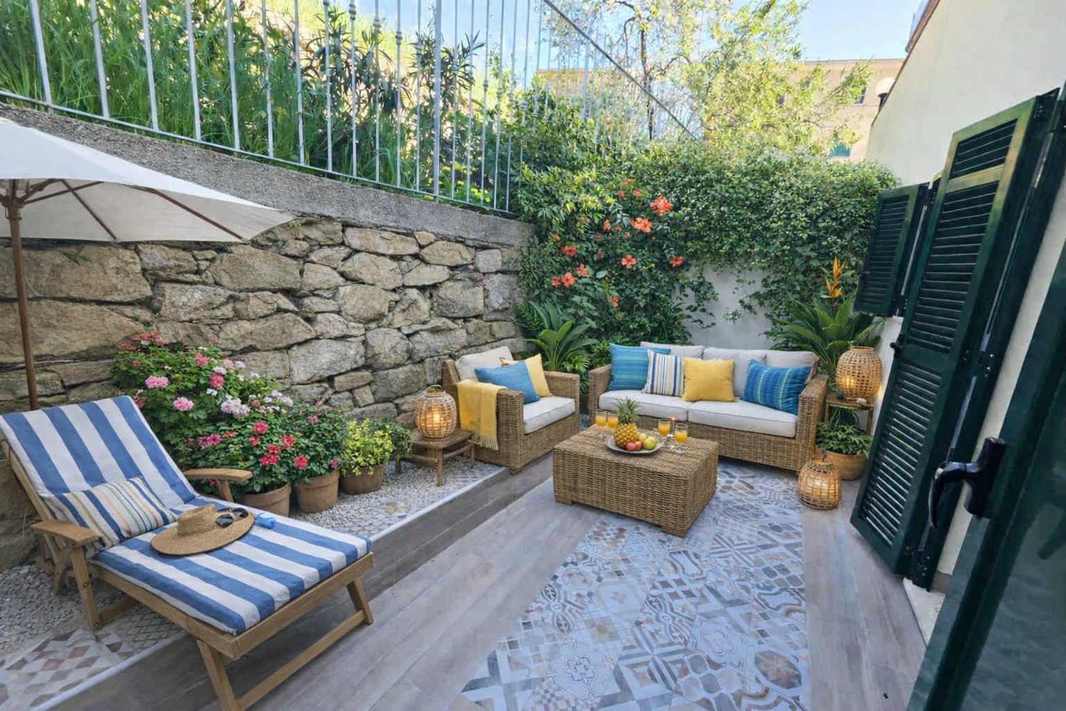 La foto del terrazzo arredato è stata inserita esclusivamente a scopo dimostrativo: si tratta di un render.